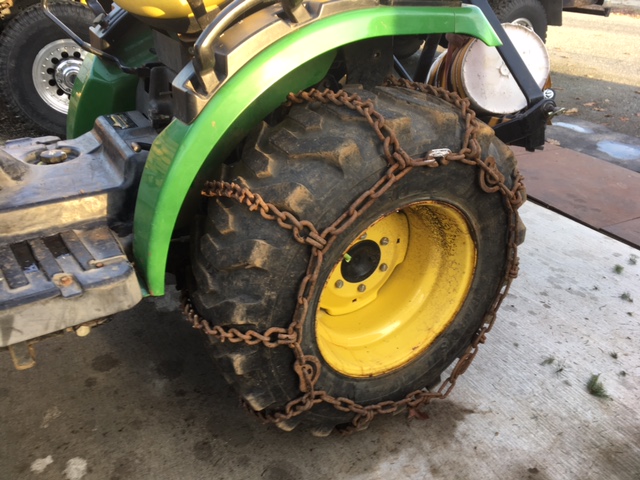 I would look around before buying the JD tire chains. Placing like Tirechain.com have a much better selection of 2-link, 4-link, V-bar, No-Vbar, etc.